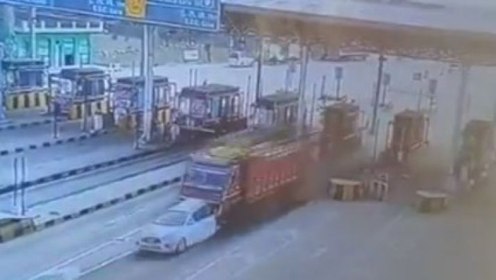 Caminhoneiro decide não parar no pedágio e arrasta carro a frente por cem metros