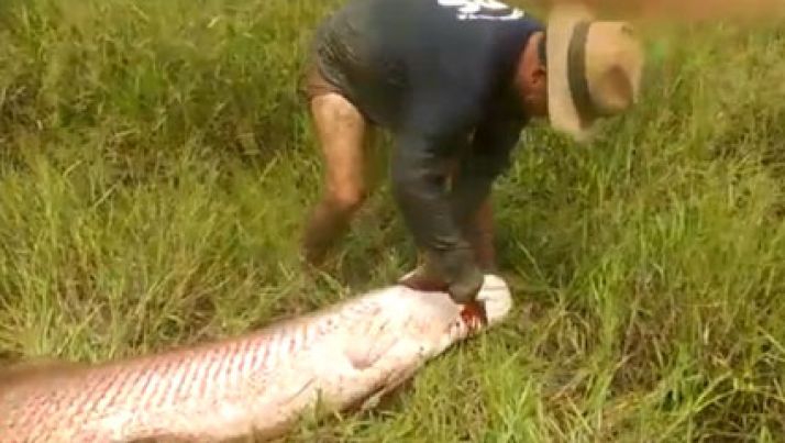 Pescador alerta e colega acaba sendo "nocauteado" pelo Pirarucu; veja o momento