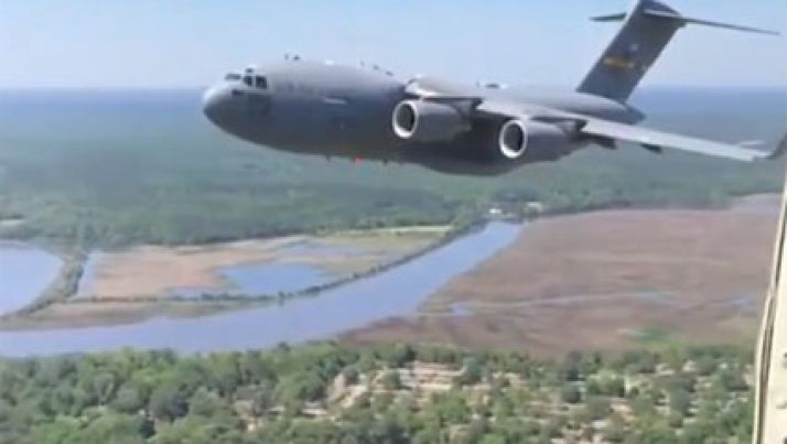 Vídeo mostra o grande C-17 voando bem ao lado do avião do cinegrafista