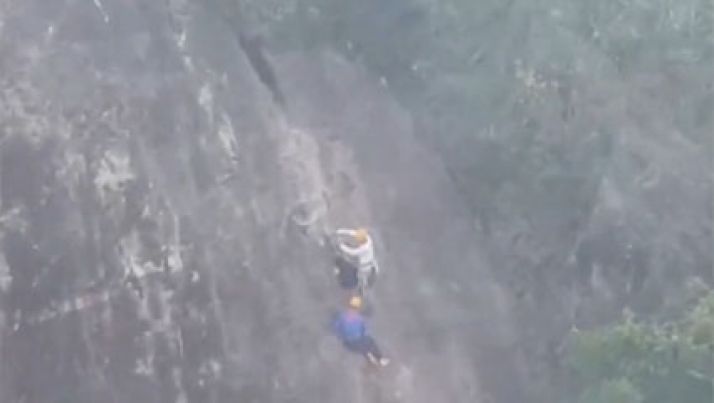Vídeo mostra resgate de helicóptero de dupla que escalava morro no Paraná