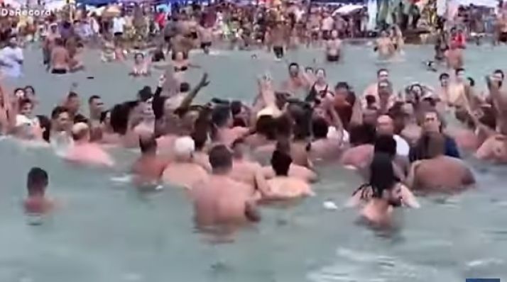 Bolsonaro provoca aglomeração ao pular no mar em praia paulista