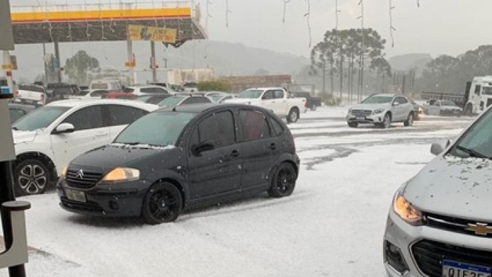 Granizo muda paisagem e deixa estrada coberta de gelo em SC