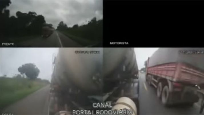 Câmera registra graneleiro invadindo a contra mão na colisão com barriga de aço