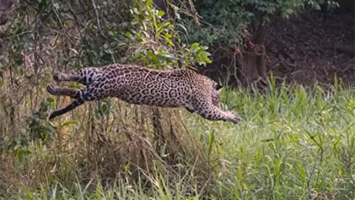 Impressionante! onça abocanha jacaré pulando de árvore; veja