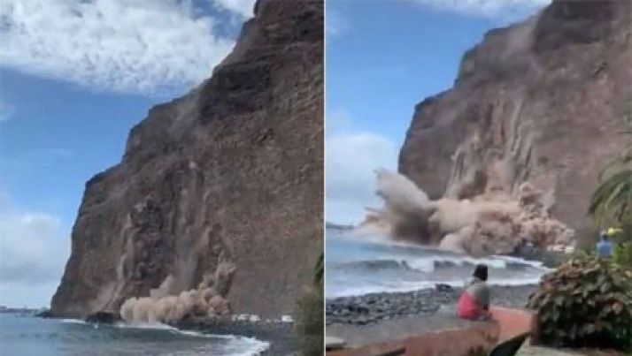 Grande parte de penhasco desaba a poucos metros de trailers e vans; veja