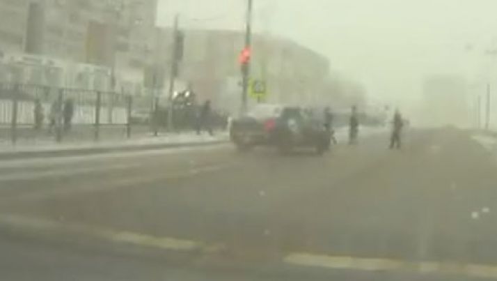 Por pouco, táxi em alta velocidade desliza na pista molhada e quase atropela pedestres; veja