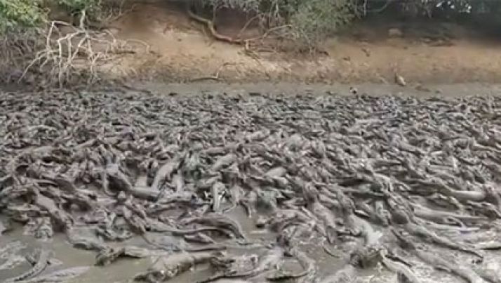 "Mar" de jacarés e gado berrando de fome impressionam em fazenda do Pantanal