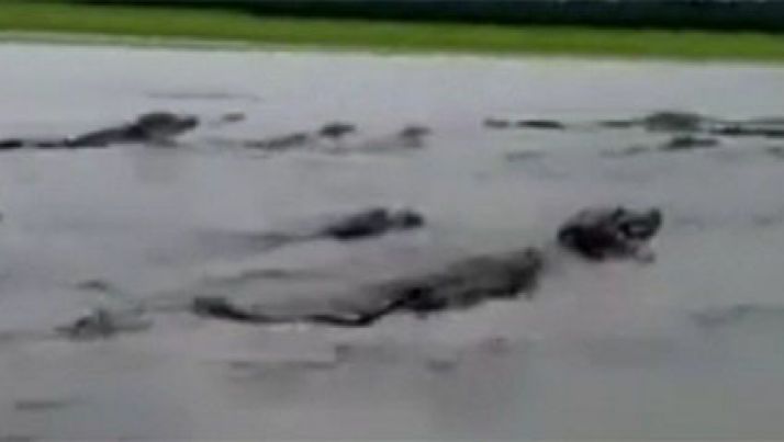 Pescadores se divertem enquanto atravessam rio repleto de jacarés; veja