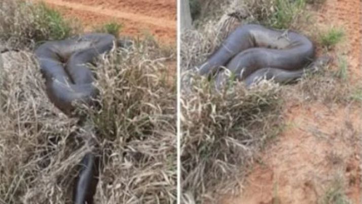 Motorista flagra sucuri de quase 8 metros em estrada no MS; veja