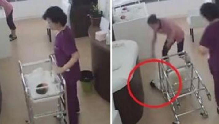 Câmera de segurança mostra enfermeira deixando bebê cair de carrinho
