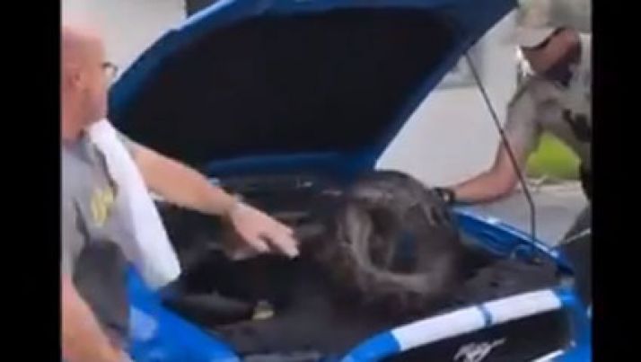 Homem foi verificar motor e encontrou enorme píton de 3 metros; veja