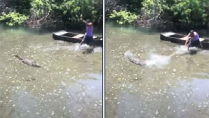 Maus-tratos: homem é flagrado dando pauladas em jacaré no Rio de Janeiro