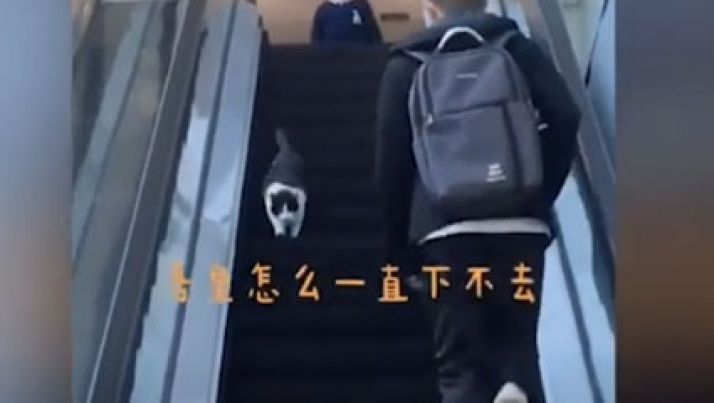 Gato teimoso viraliza descendo na direção errada uma escada rolante; veja