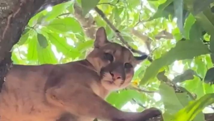 Morador flagra onça escondida em cima de um pé de manga