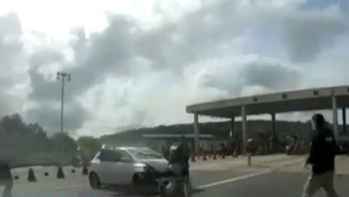 Não percebeu: Motociclista bate em barreira de concertina e fica preso; veja