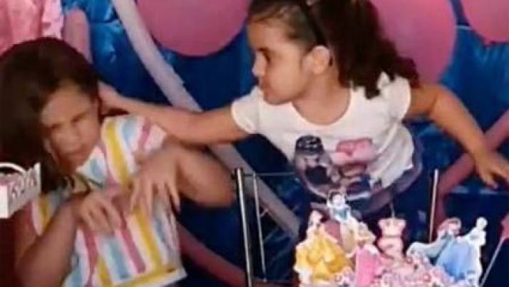 Minibarraco: Menina se irrita após irmã apagar a vela do bolo no seu lugar e puxa o cabelo dela