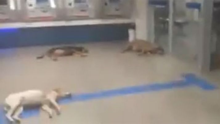 Cachorros "invadem" agência da Caixa em Ubá/MG para dormirem no ar-condicionado