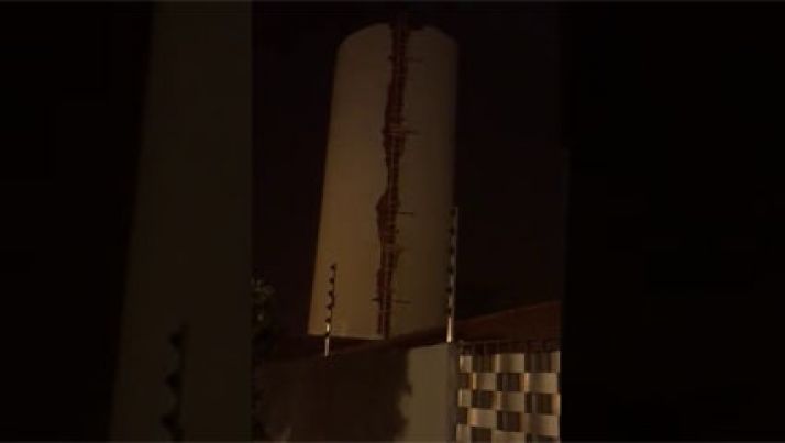Caixa d'água com capacidade para 1 milhão de litros balança durante temporal no Paraná