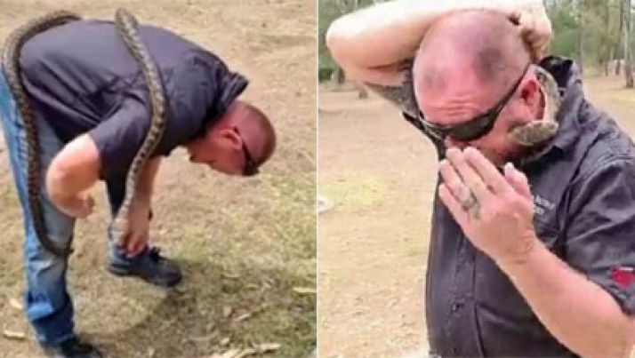 Homem leva bote no rosto de píton fêmea agressiva ao gravar live no Facebook