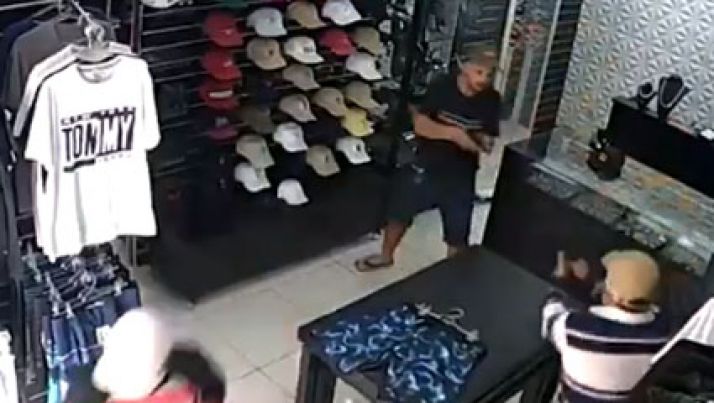 Imagens mostram momento em que dono de loja dispara e mata três homens durante assalto