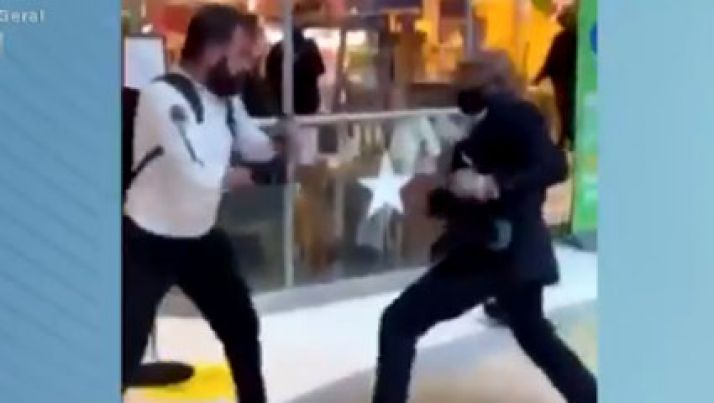 Confusão em shopping: cliente furioso parte para cima de segurança e o agride com socos