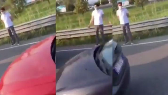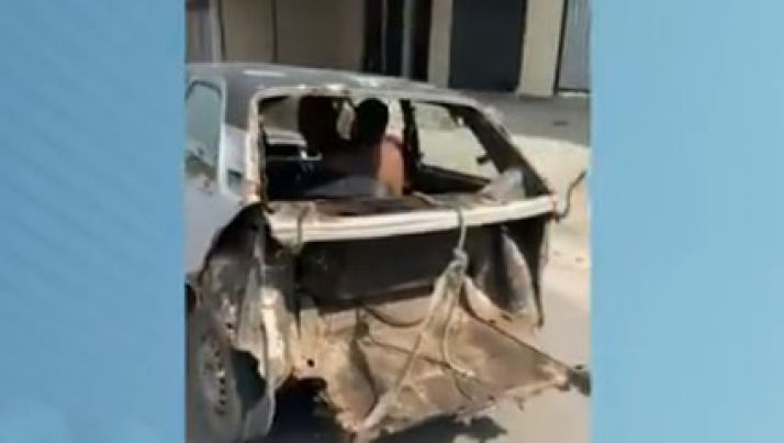 Criminosos dirigem carro sem porta e sem vidro em alta velocidade e exibem fuzil; veja