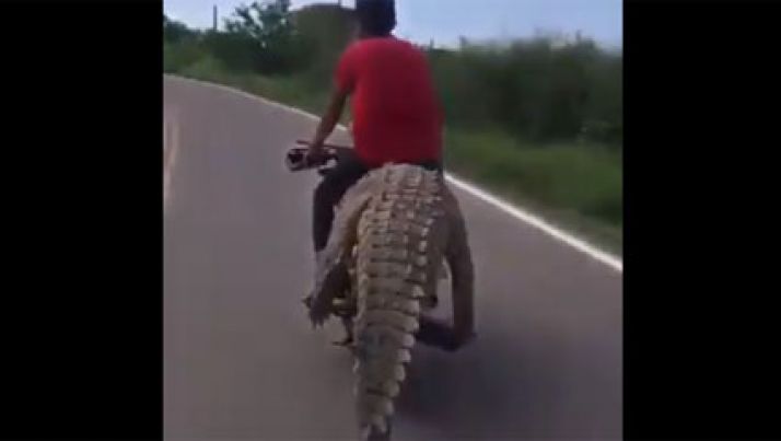 Homens caçam crocodilo e transportam animal em motocicleta; veja