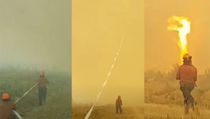 Tornado de fogo gigantesco 'rouba' mangueira do Corpo de Bombeiros; veja
