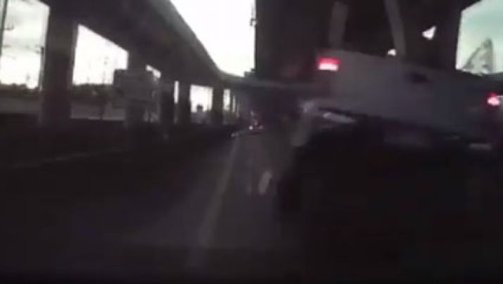 Câmera registra carreta com cigarro contrabandeados tombando em Maringá