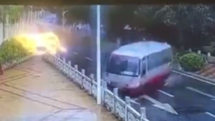 Van explode enquanto espera o semáforo abrir; portas e para-brisa voaram; veja