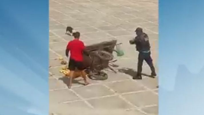 Sargento da polícia humilha e derruba carrinho de frutas de feirante; veja