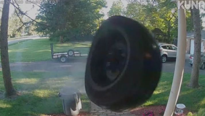 Inusitado: pneu solto atinge casa em alta velocidade e "toca" campainha
