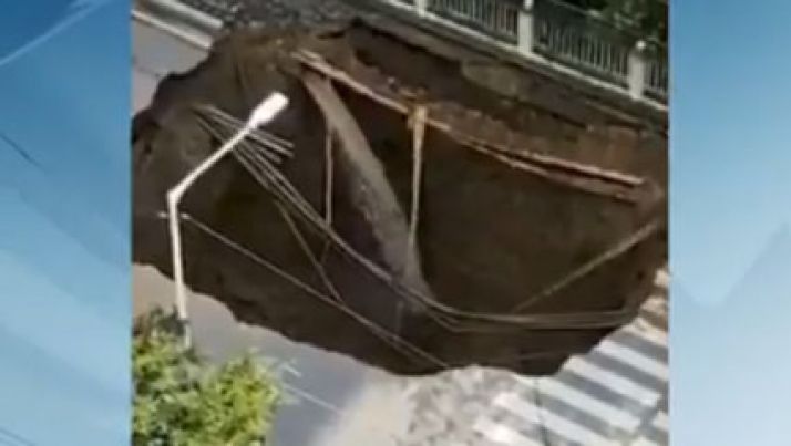 Cratera enorme se abre após rompimento de cano de água e assusta moradores