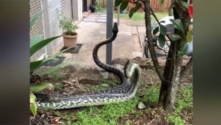 Vídeo mostra pítons brigando por fêmea; cobras foram resgatadas em jardim de casa