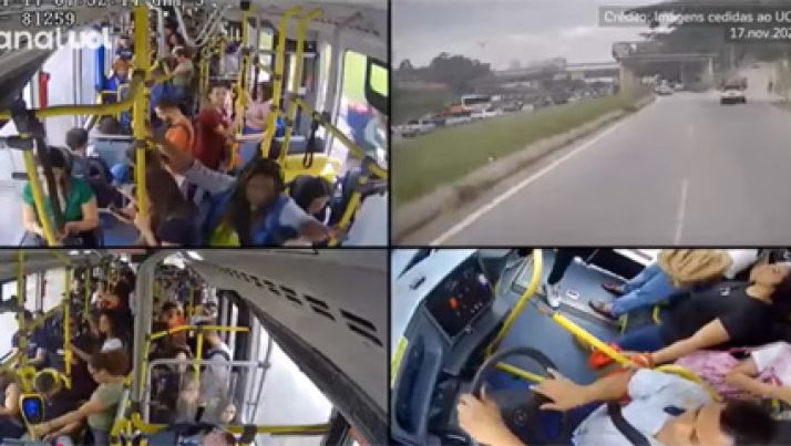 Veja momento em que ônibus perde o controle e bate em 15 carros em SP