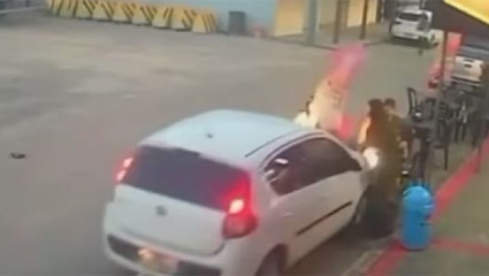 Flagra: funcionária reage a assalto e afugenta criminosos com banco de plástico