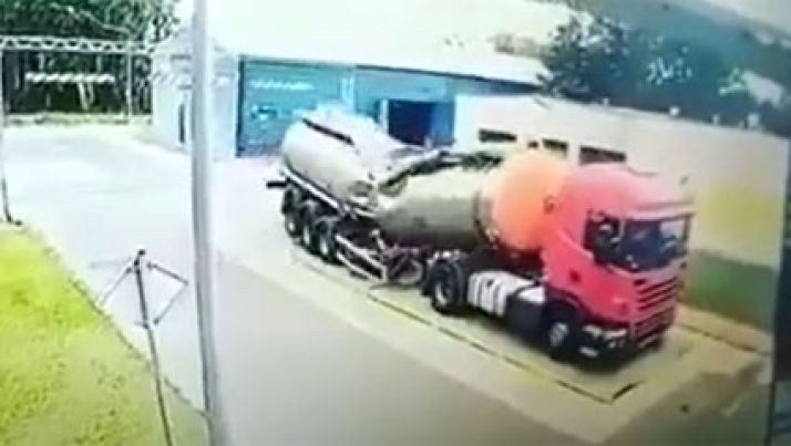 Impressionante! Vídeo mostra carreta tanque sendo esmagada pelo vácuo; veja