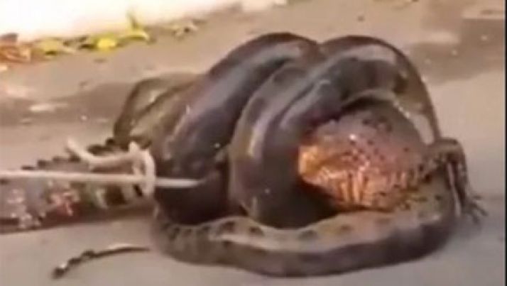 Viralizou: Sucuri tenta engolir jacaré em condomínio em Manaus; veja