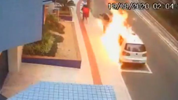 Mulher é flagrada incendiando o carro do ex-namorado na rua em Balneário Camboriú