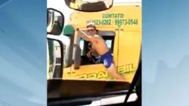 Flagrante inusitado: motorista dirige carreta com o corpo para fora do veículo; veja