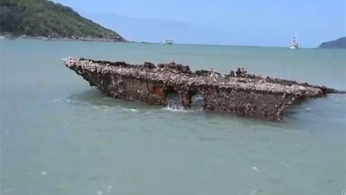 Recuo do mar em Santa Catarina mostra navio naufragado há 63 anos; veja