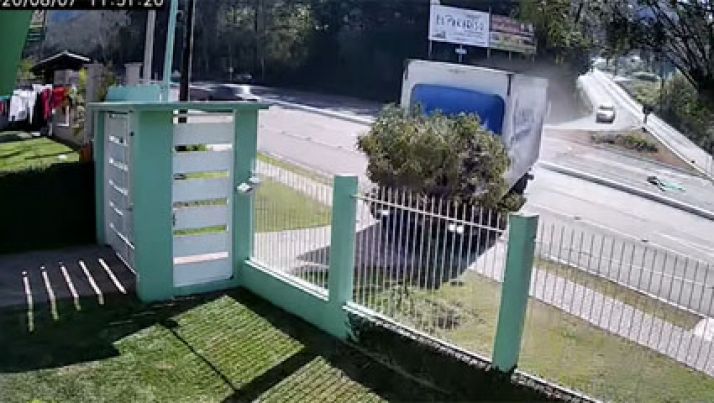 Câmera de segurança flagra momento em que caminhão invade casa no Vale do Sinos