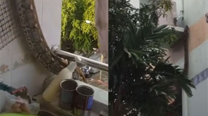 Susto: Píton de mais de 4 metros é flagrada escapando pela janela de apartamento