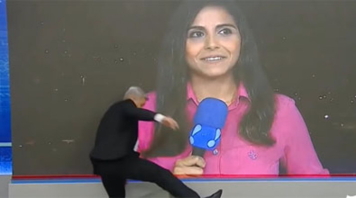 Apresentador Sikêra Junior cai durante programa ao vivo; veja