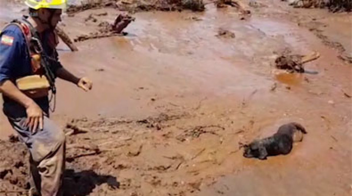 Cão do Corpo de Bombeiros de Santa Catarina ajuda no resgate de vítimas em Brumadinho