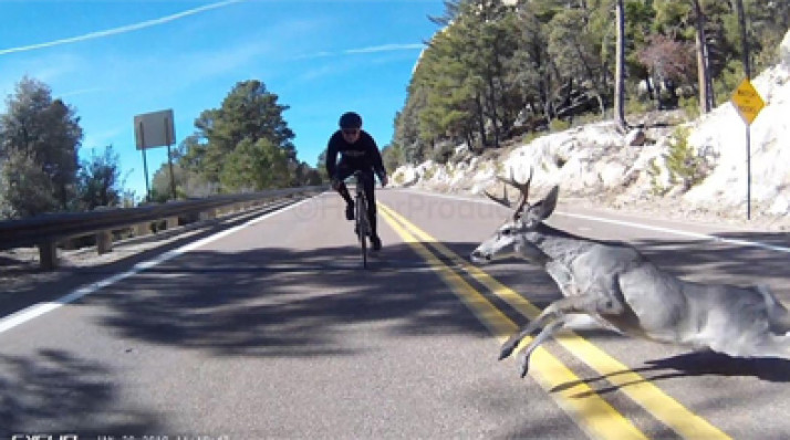 Ciclista capota após ser atropelado por cervo em estrada nos EUA