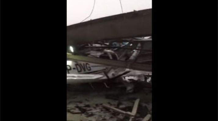 Chuva de granizo destrói cobertura de hangar no Campo de Marte em SP
