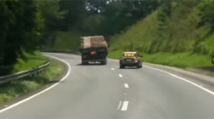 Enorme placa de trânsito despenca sobre carro em rodovia na Austrália