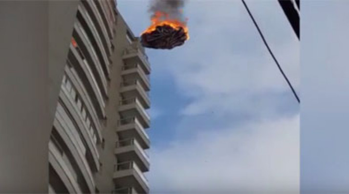 Balão em chamas cai em prédio em São José dos Campos (SP)
