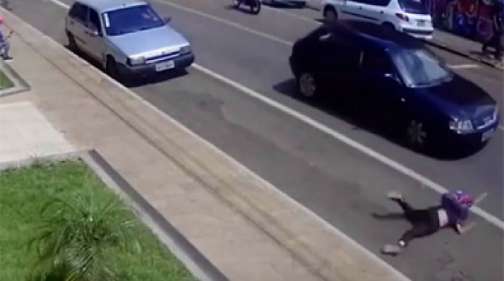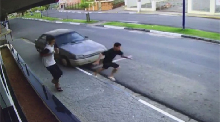 Adolescente sai andando após ser atropelado na calçada por carro desgovernado